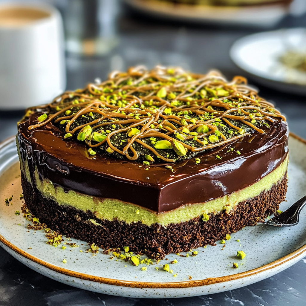 - Impressive presentation: The layers of chocolate and pistachio make for a visually striking dessert that’s perfect for gatherings.